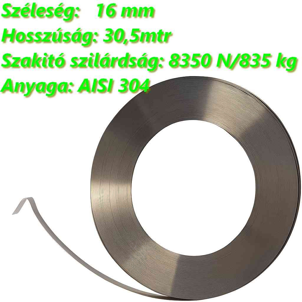 Ez a 304-es rozsdamentes acél szalag 16 mm széles és 30,5 méter hosszú, 0,7 mm vastagságú. A szalag szakitóereje 8350 N, amely biztosítja a megfelelő szilárdságot és stabilitást nagy igénybevételű környezetekben is.